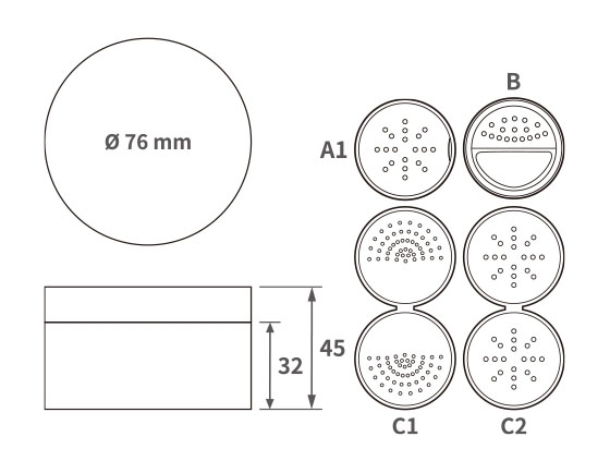 *寸法:Ø 76 mm x 45 mm